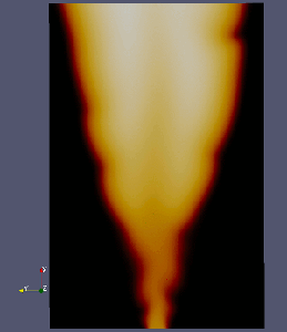 Our team will work with a multi-dimensional in-house DNS code (DINOSOARS) during the current phase of the project. DINOSOARS (DIrect Numerical, high-Order Simulation and On-the-fly Analysis of Reacting flows and Sprays) is a new Fortran-2003 code which is developed in our group since the beginning of 2013. DINOSOARS is three dimensional, uses a 6th order finite difference spatial discretization and low Mach number solver for reacting and multi-phase turbulent flows. The code is parallelized in two dimensions using 2DECOMP&FFT library on top of standard MPI and FFTW. Also, 3rd and 4th order Runge-Kutta implicit time integration schemes are used for stiff chemistry part in the governing equations, in order to increase the integration time step.